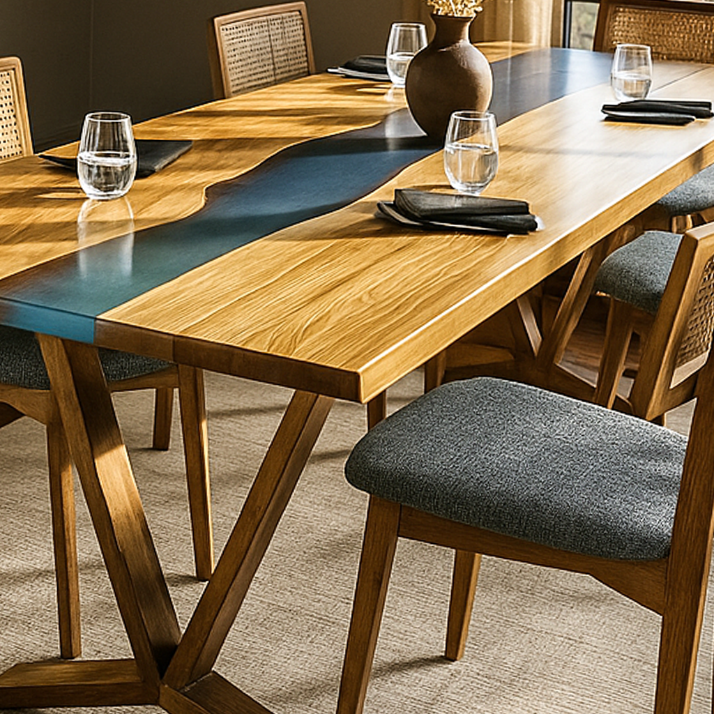 - Doğal Malzeme: Zengin ceviz dokuları ve mavi epoksi detaylarla benzersiz bir görünüm.