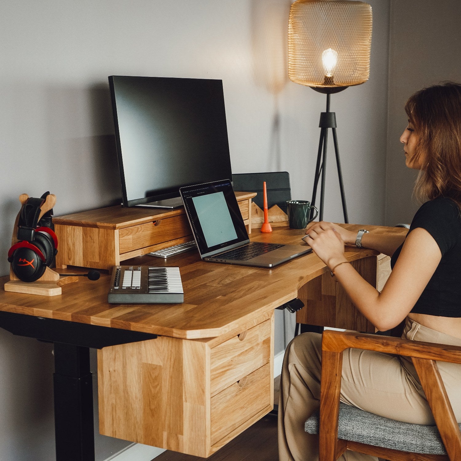 Yüksekliği Ayarlanabilir Çalışma Masası, masif meşe ağacından üretilmiştir ve doğal malzemelerle çevre dostu bir ürün sunar. El işçiliği ile üretilen bu masa, her bir detayı ile benzersizdir ve uzun ömürlü kullanım sağlar. Üretim sürecinde ustalarımızın titiz çalışması, bu masayı hem estetik hem de dayanıklı kılar. Masif ahşaptan ürettiğimiz yemek masaları ve zigon sehpalara da göz atmayı unutmayın!