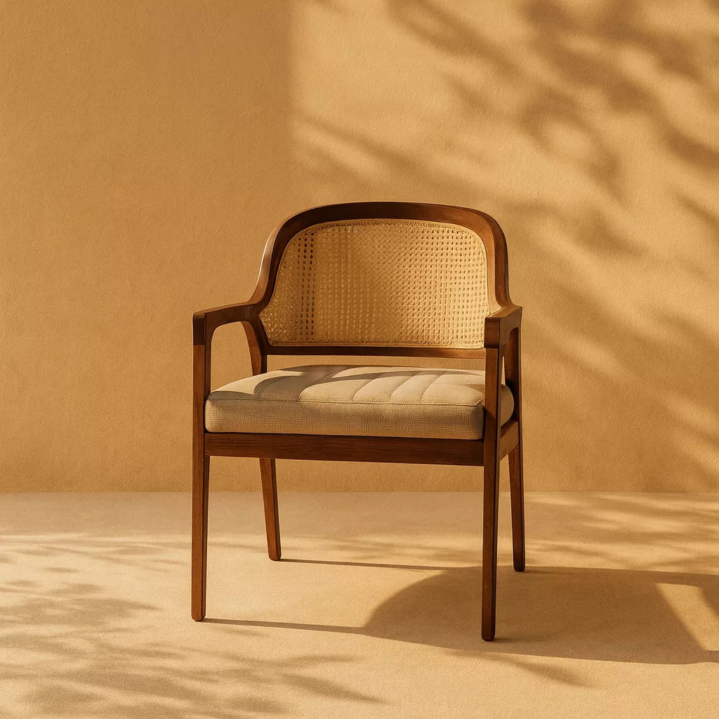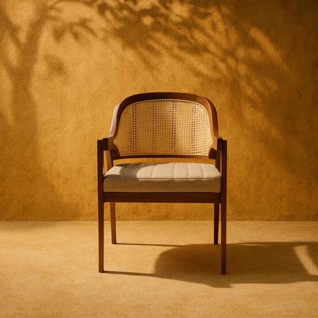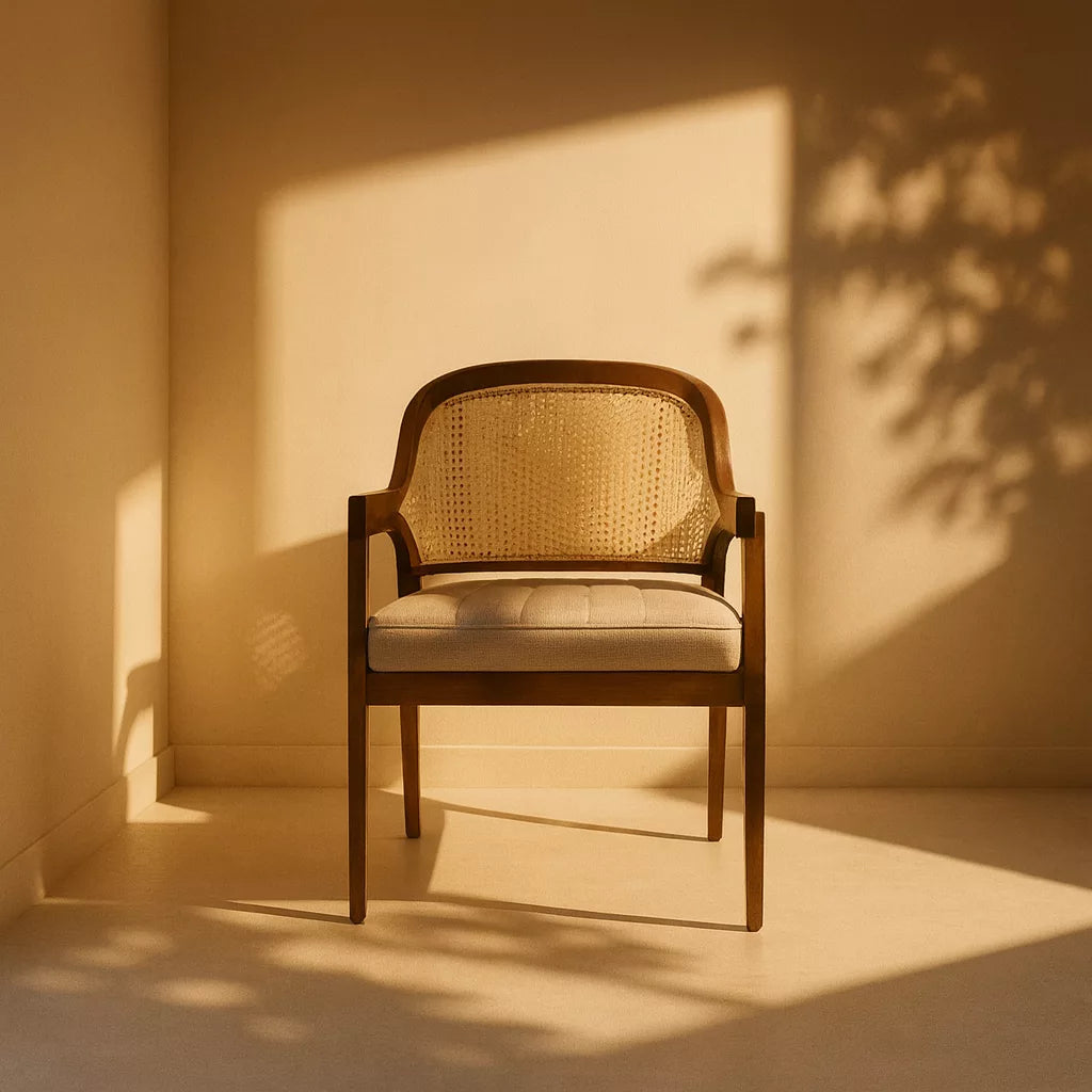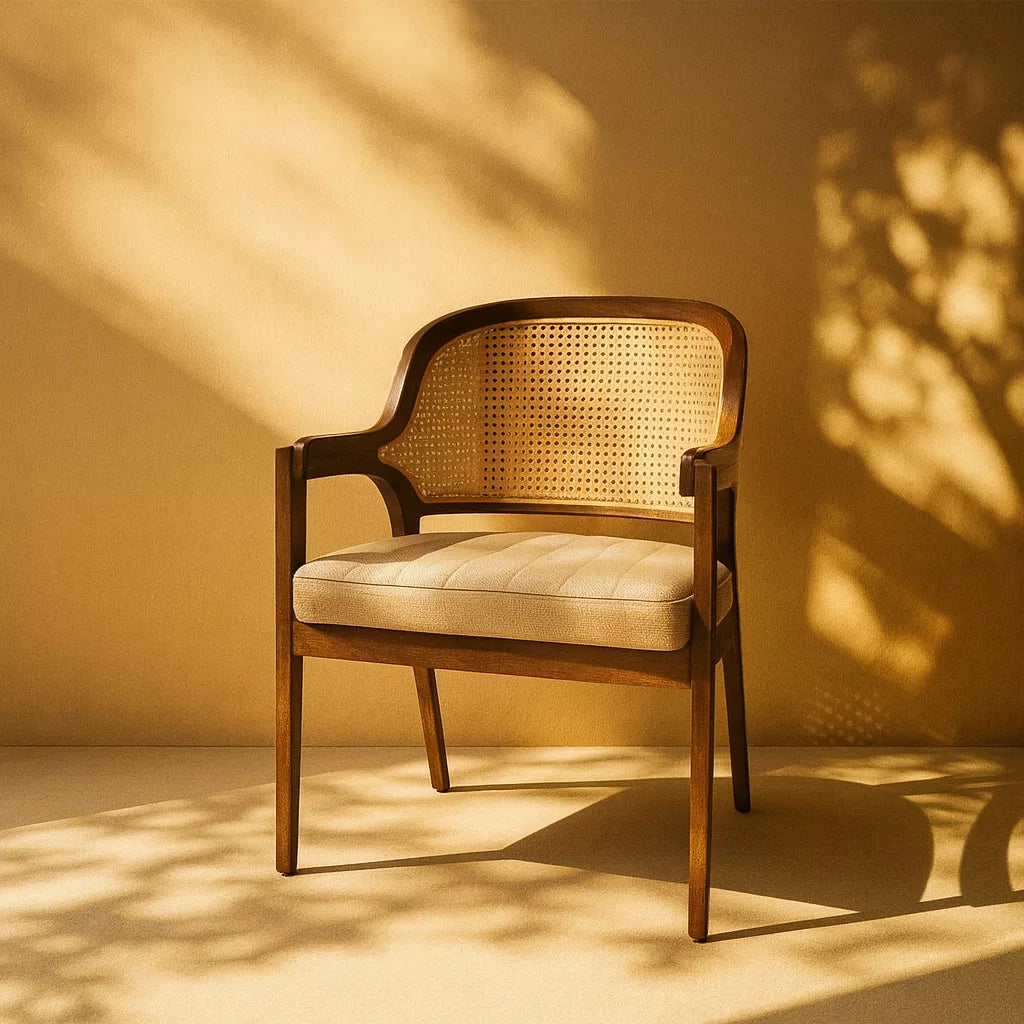 Bu sandalye, masif kayın ağacı ve doğal hazeran örgü kullanılarak üretilmiştir. Hazeran sırt yapısı mekana hafif ve ferah bir görünüm kazandırır. Masif ahşap iskelet, uzun süreli ve güvenli kullanım sağlar. Ürün hem estetik hem de dayanıklılık dikkate alınarak tasarlanmıştır.