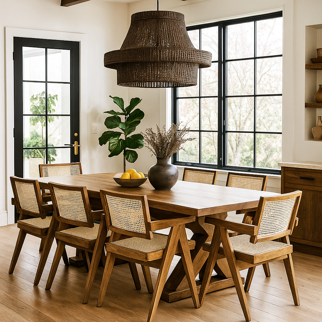 Hazeran sandalye, masif cevizden üretilmiş modern tasarımı ve Pierre Jeanneret tarzından aldığı ilhamla yaşam alanlarınıza şıklık katar. Kolçaklı yapısı, hem estetik hem ergonomik bir oturuş sunar. Masif ceviz malzemesi dayanıklılığı garanti ederken, minimalist çizgiler modern dekorasyonlarla mükemmel uyum sağlar. Hem tarz hem de konforu bir arada sunan ahşap sandalye, yemek odasından çalışma alanlarına kadar çok yönlü kullanım imkânı tanır.