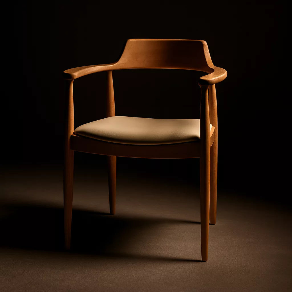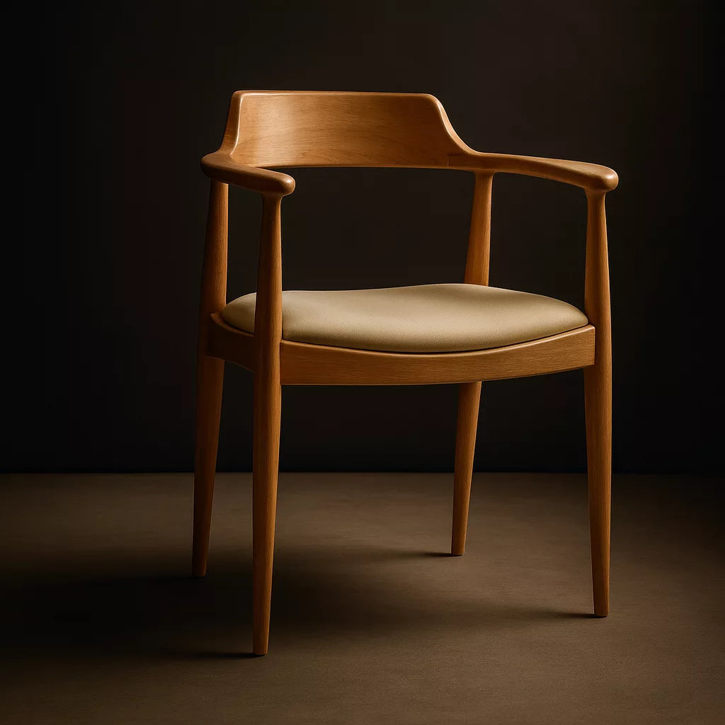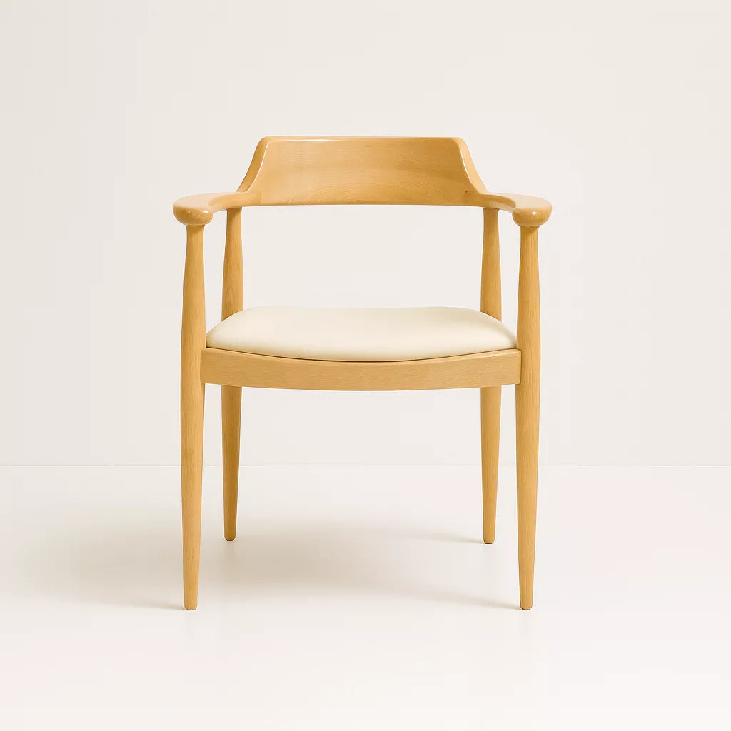 Bu sandalye, Kennedy stiline ait ikonik formdan esinlenerek tasarlanmıştır. Masif kayın ağacından üretilmiştir ve İskandinav tasarım anlayışına uygun sade bir yapıya sahiptir. Sırt ve kol bölümü kesintisiz kavisli bir formda tasarlanmıştır. Bu yapı, vücudu destekleyen ergonomik bir oturum sunar. Sandalye, yemek odası ve çalışma alanlarında kullanıma uygundur.