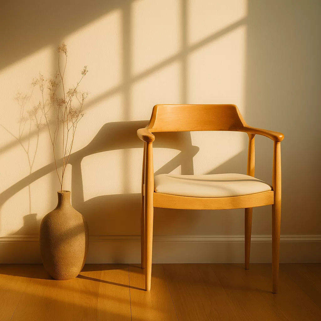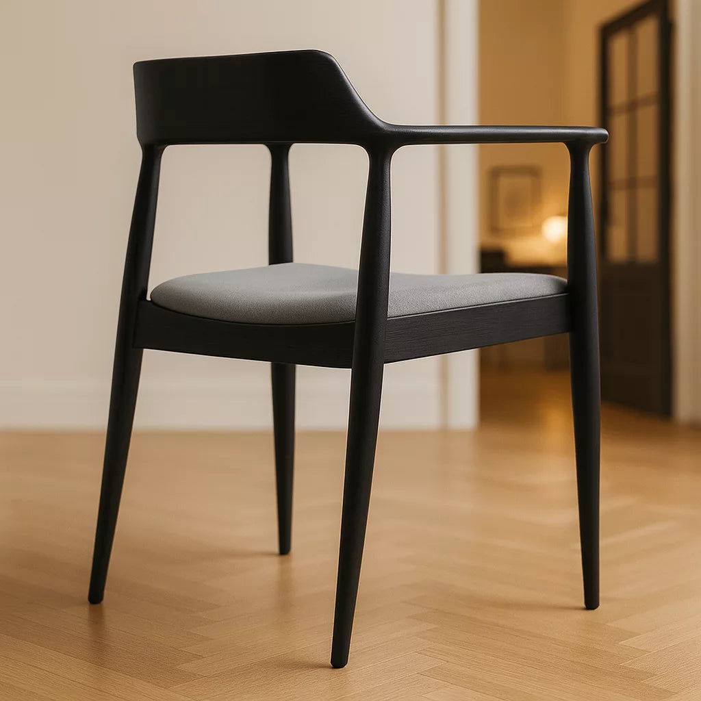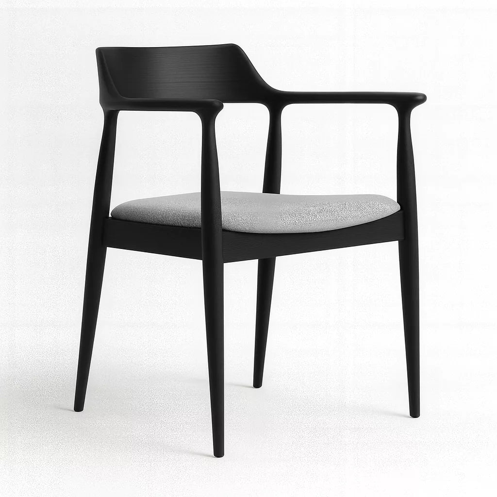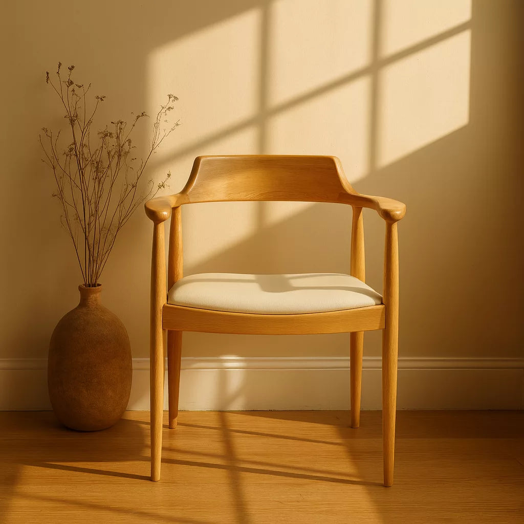 Bu sandalye, Kennedy stiline ait ikonik formdan esinlenerek tasarlanmıştır. Masif kayın ağacından üretilmiştir ve İskandinav tasarım anlayışına uygun sade bir yapıya sahiptir. Sırt ve kol bölümü kesintisiz kavisli bir formda tasarlanmıştır. Bu yapı, vücudu destekleyen ergonomik bir oturum sunar. Sandalye, yemek odası ve çalışma alanlarında kullanıma uygundur.