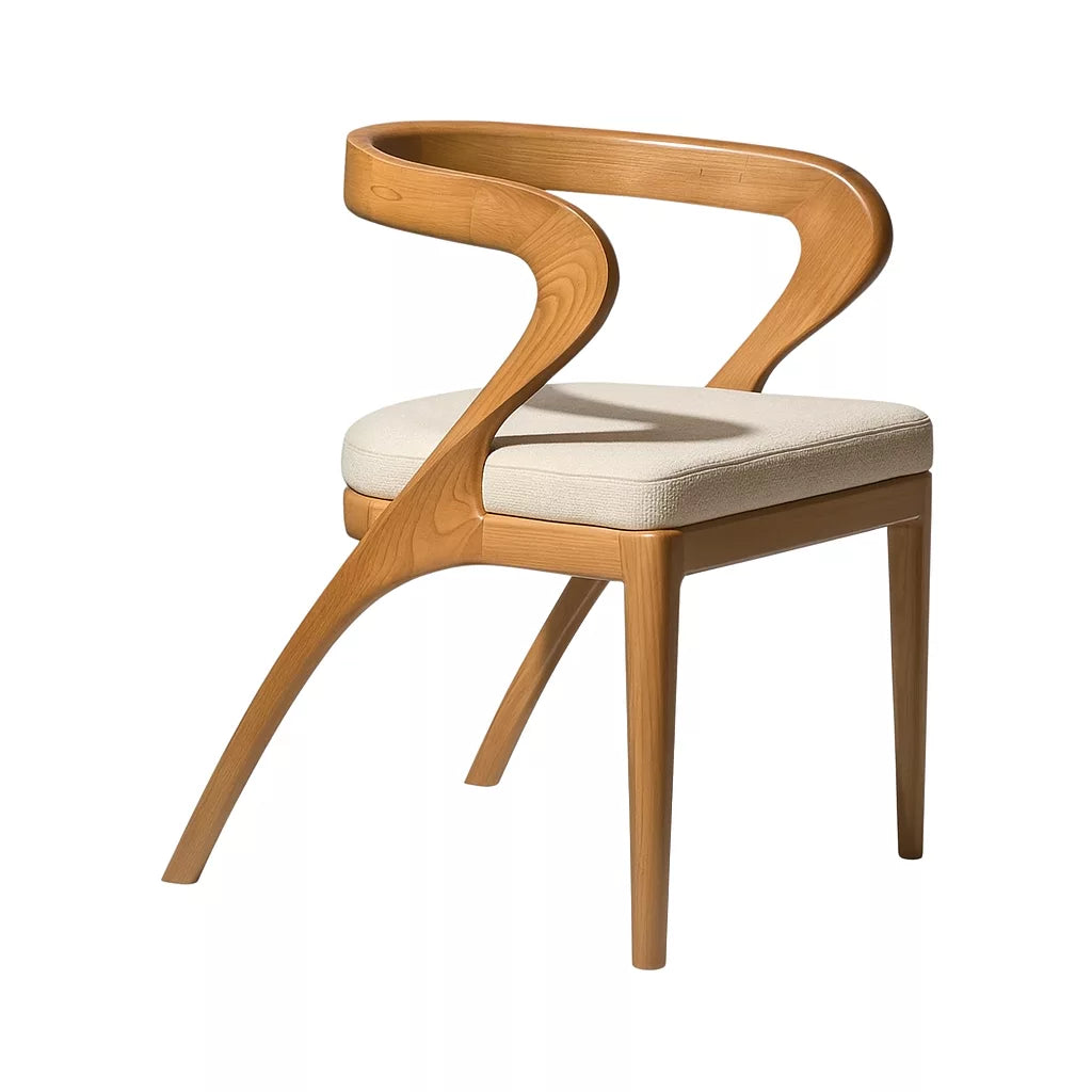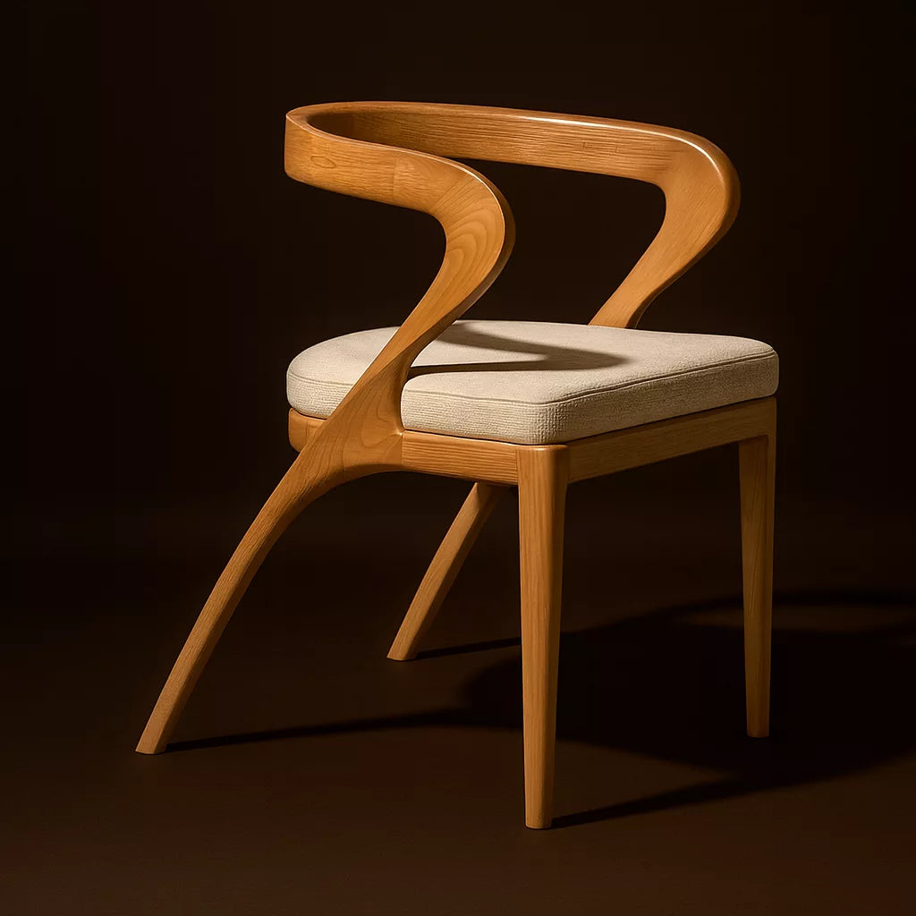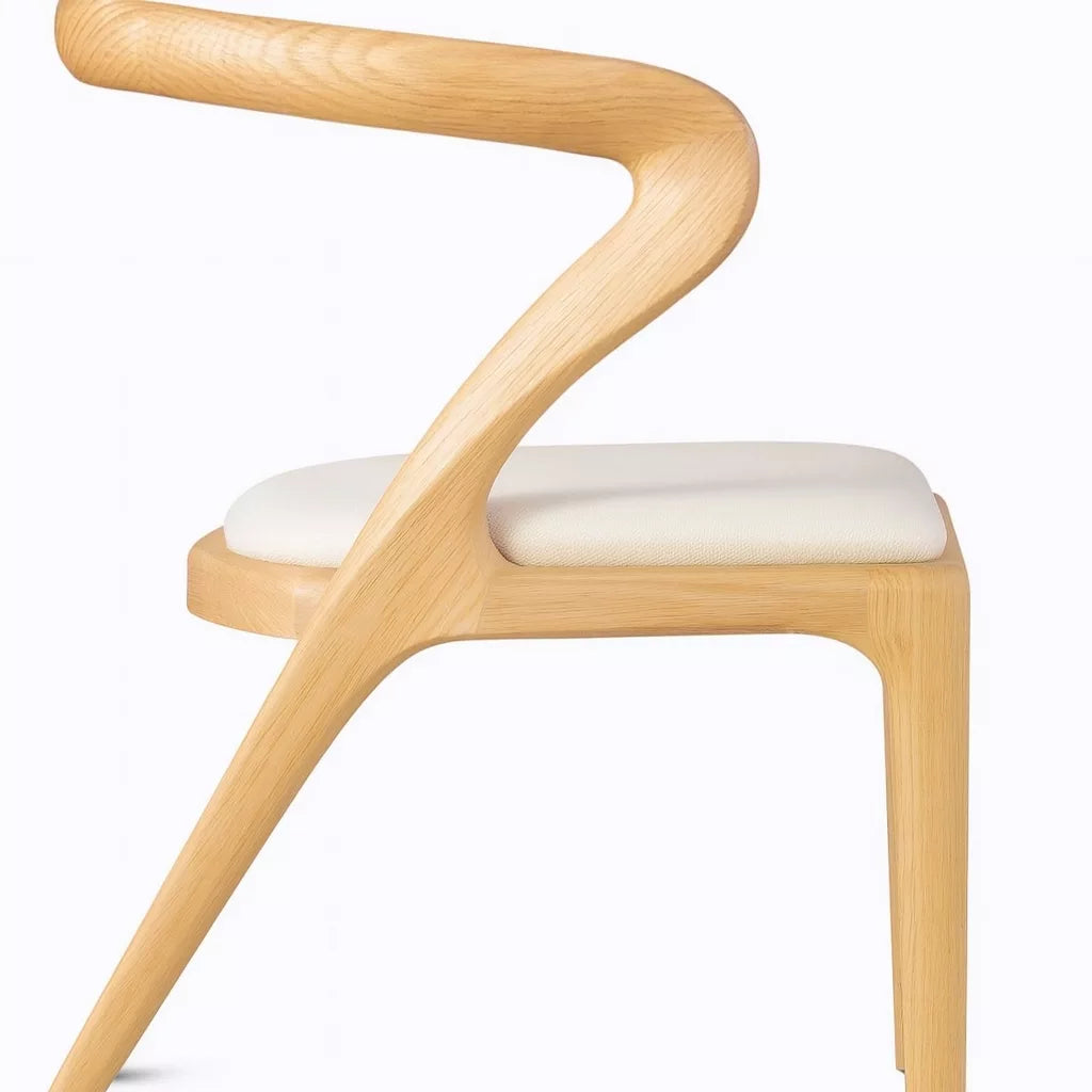 Bu sandalye, masif kayın ağacından üretilmiştir. Tasarımda İskandinav ve Japon estetik anlayışı birlikte kullanılmıştır. Kavisli sırt yapısı, vücudu destekleyerek rahat bir oturma sunar. Yumuşak hatları sayesinde mekanda sade ve dengeli bir görünüm oluşturur.