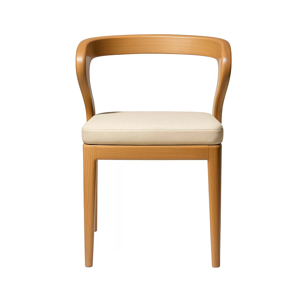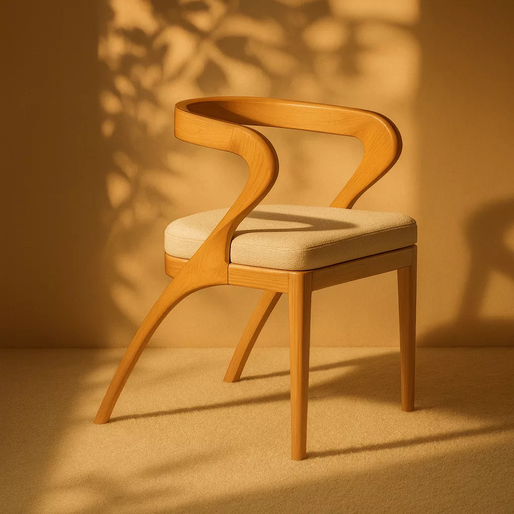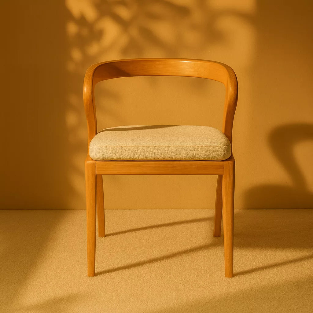 Bu sandalye, masif kayın ağacından üretilmiştir. Tasarımda İskandinav ve Japon estetik anlayışı birlikte kullanılmıştır. Kavisli sırt yapısı, vücudu destekleyerek rahat bir oturma sunar. Yumuşak hatları sayesinde mekanda sade ve dengeli bir görünüm oluşturur.