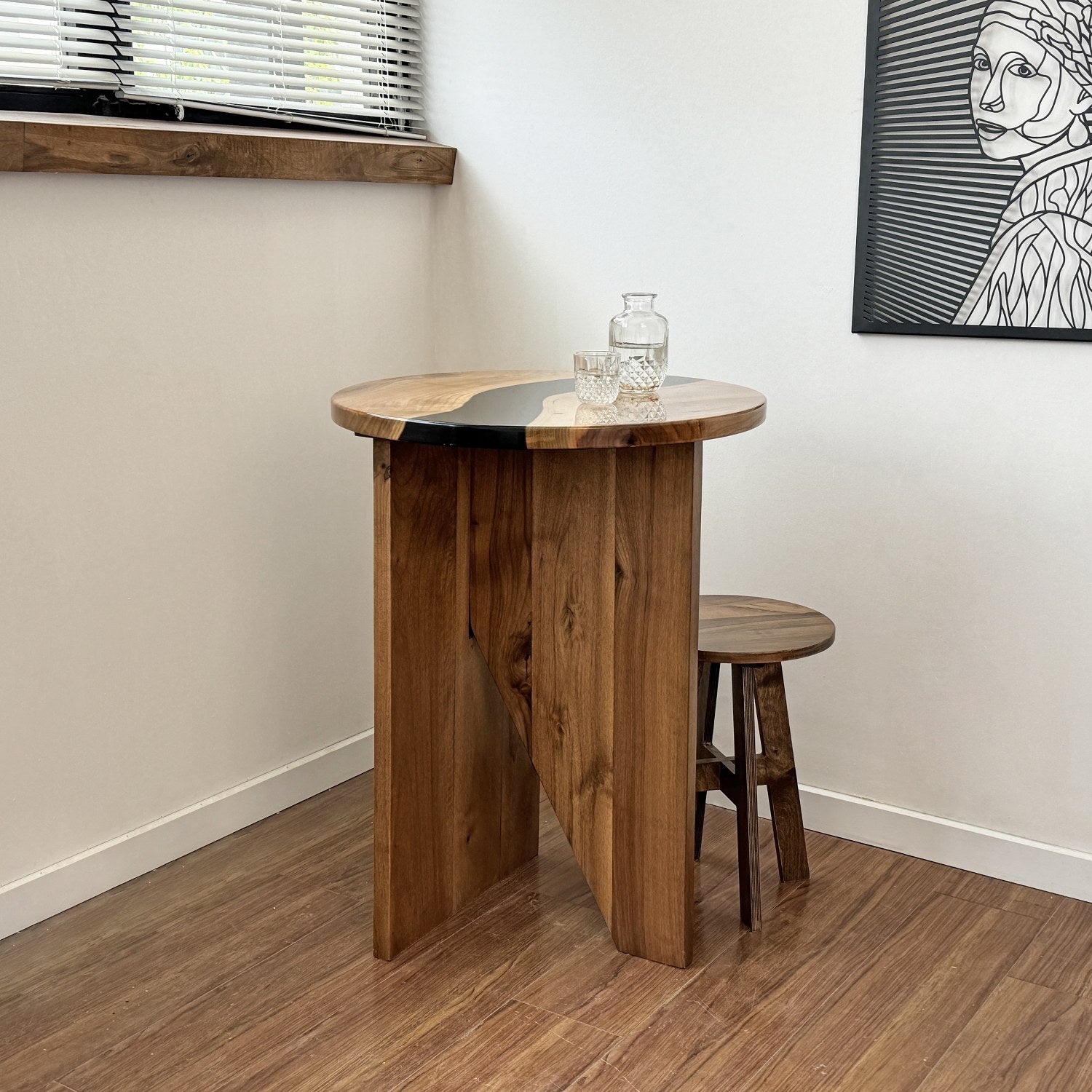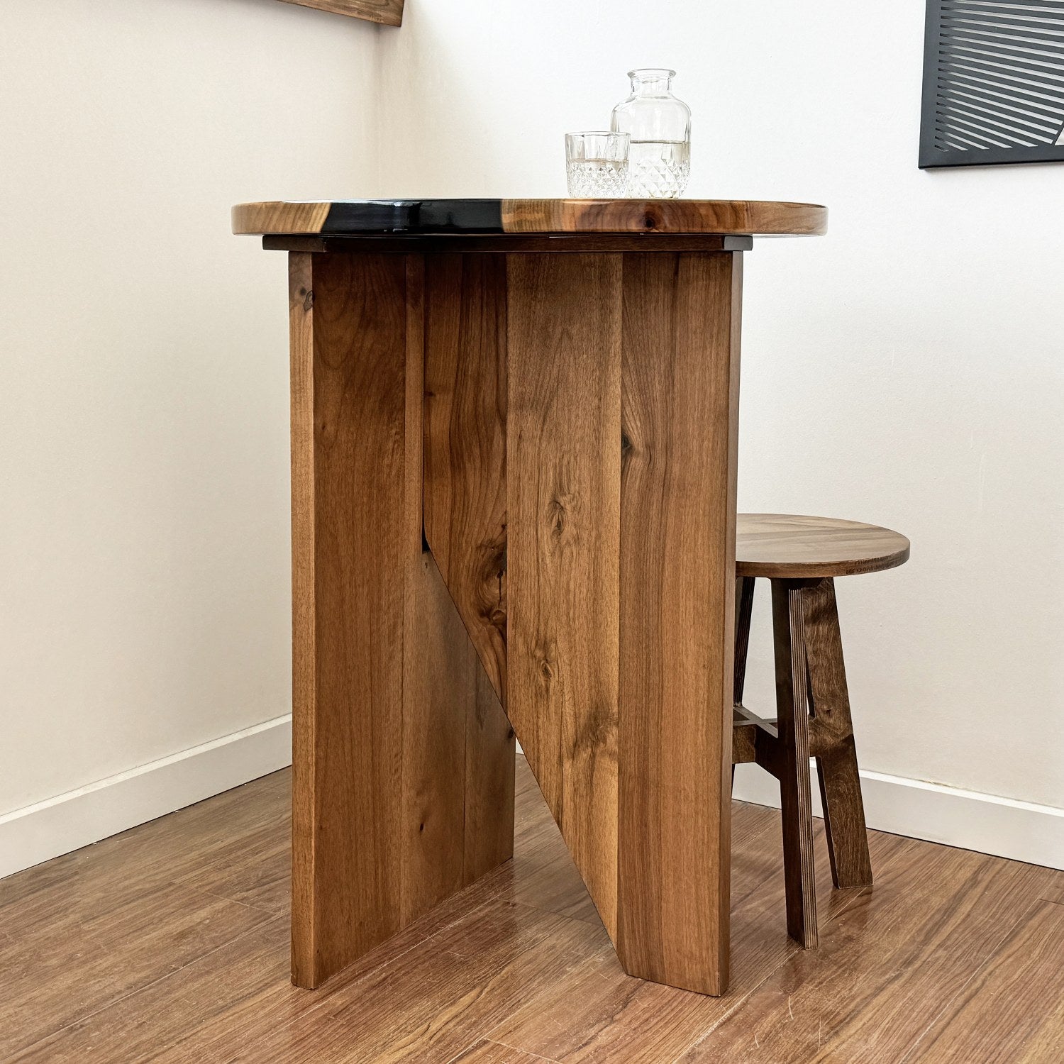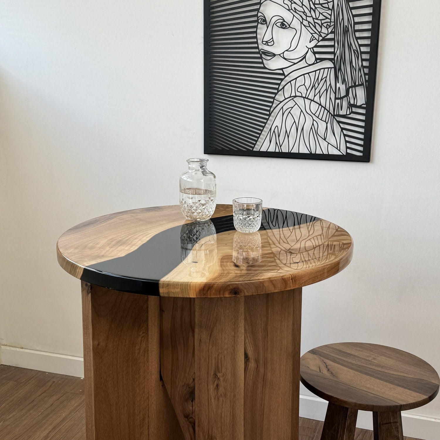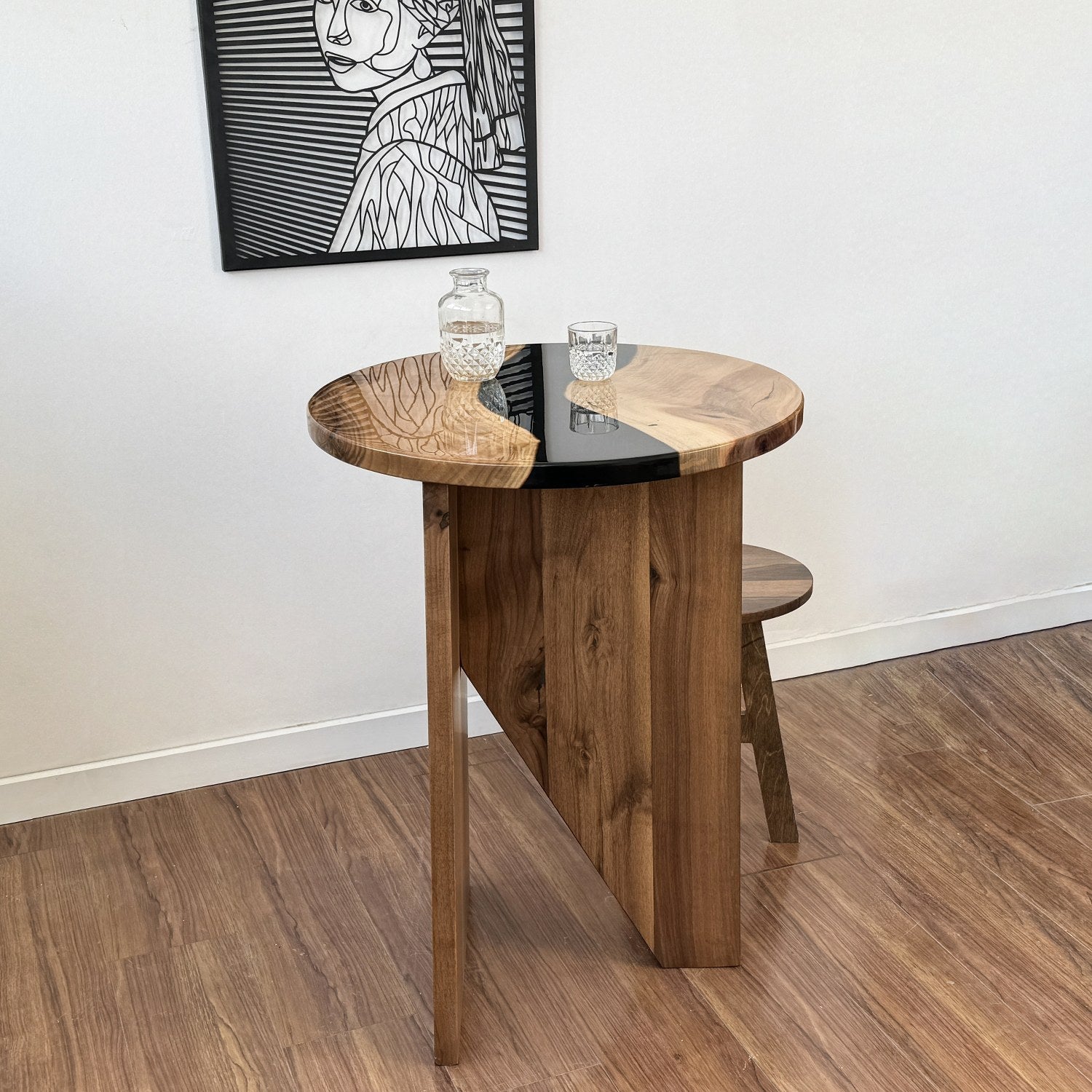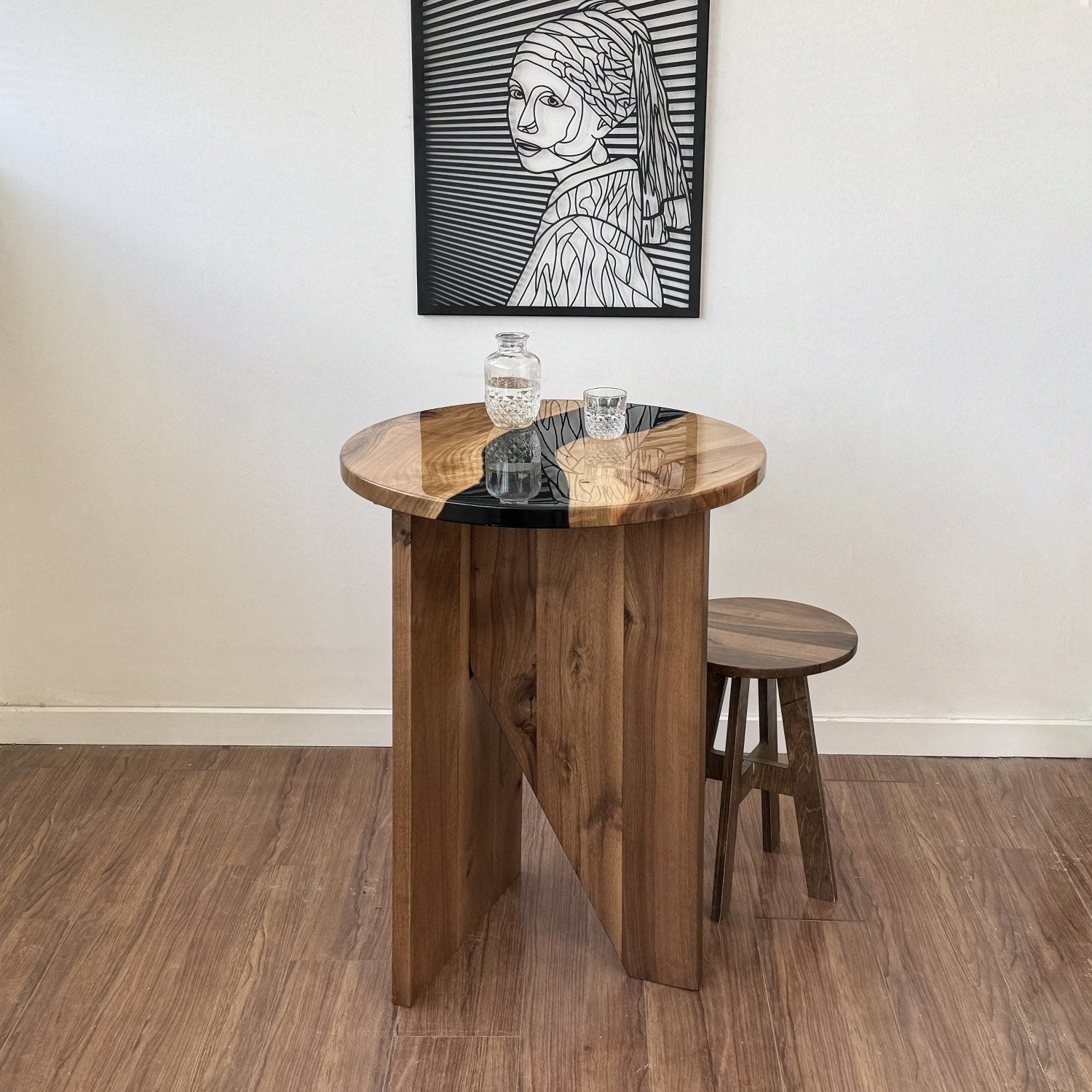 Yuvarlak bar masası, masif ceviz ağacından üretilmiş olup, epoksi detayları ile eşsiz bir tasarıma sahiptir. Bistro masa tarzındaki şıklığıyla hem modern hem de endüstriyel dekorasyonlara mükemmel uyum sağlar. Dayanıklı yapısı ve şık tasarımı ile özellikle bar alanlarında, oturma odalarında veya mutfaklarda rahatlıkla kullanılabilir. Hem estetik hem de fonksiyonel bir seçenek olan ahşap masa her iç mekanın göz alıcı bir parçası olacaktır. Diğer epoksi yemek masalarını görmek için tıklayın!