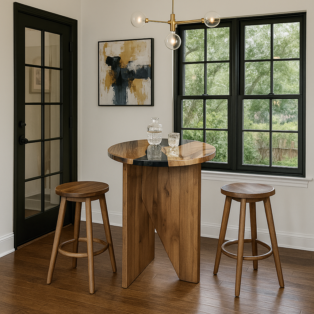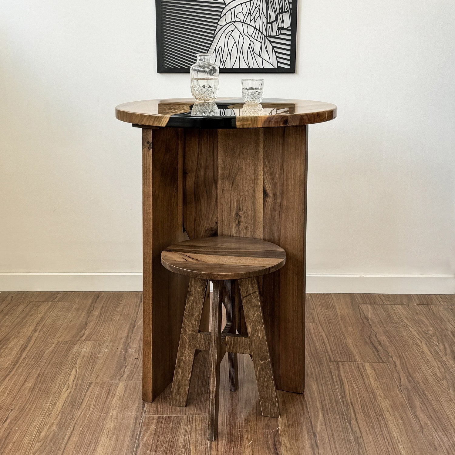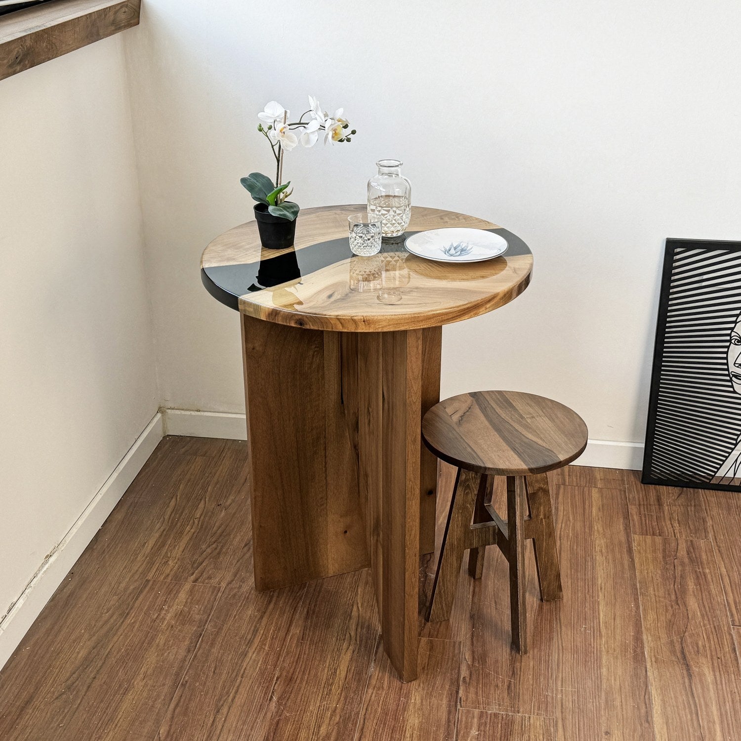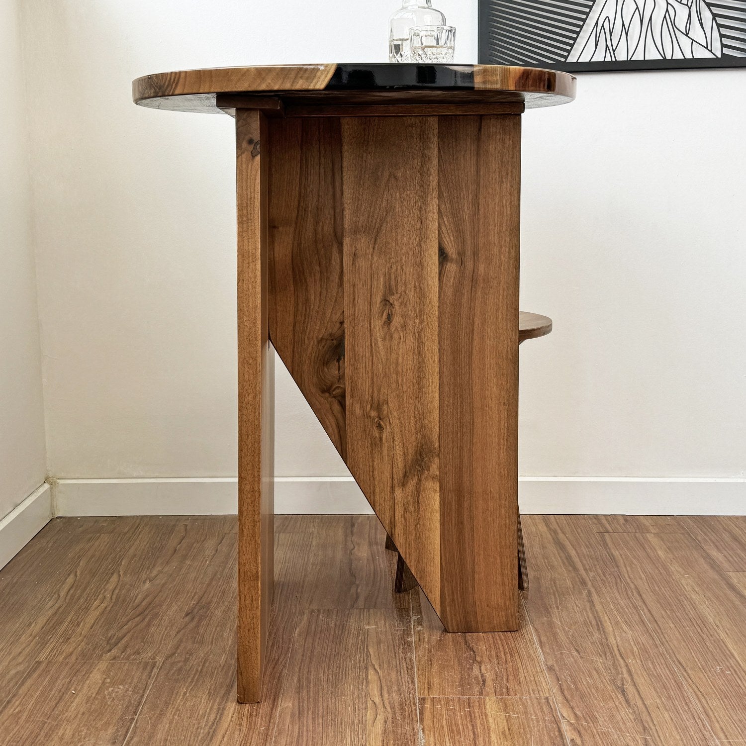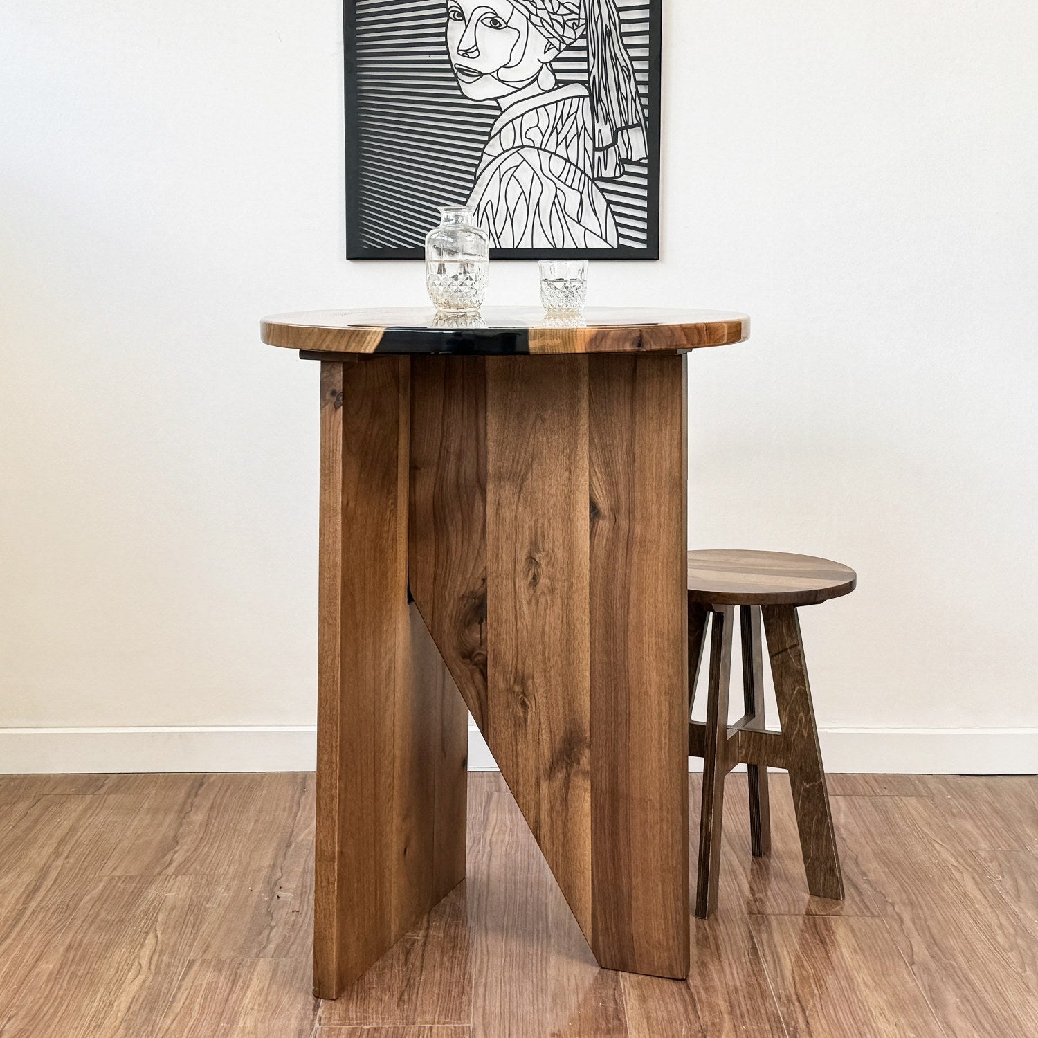 Yuvarlak bar masası, masif ceviz ağacından üretilmiş olup, epoksi detayları ile eşsiz bir tasarıma sahiptir. Bistro masa tarzındaki şıklığıyla hem modern hem de endüstriyel dekorasyonlara mükemmel uyum sağlar. Dayanıklı yapısı ve şık tasarımı ile özellikle bar alanlarında, oturma odalarında veya mutfaklarda rahatlıkla kullanılabilir. Hem estetik hem de fonksiyonel bir seçenek olan ahşap masa her iç mekanın göz alıcı bir parçası olacaktır. Diğer epoksi yemek masalarını görmek için tıklayın!